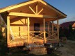 На террасе при условии что она есть делаем перила из строганной доски со всех сторон, столбы террасные также строганные, а не обрезки профилированного бруса с шипом и пазом. Домкратики на столбах для дальнейшей регулировки. Балясины будут сделаны аккуратно. Обратите внимание что в дешёвых случаях это может быть и будет просто вагонка прибирая к неотесанной доске снаружи и столбы будут не квадратные а просто профилированный брус как на видео.