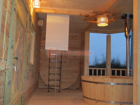 Для строительства деревянной бани 6х8 метров СК Смирнов разработал проект №216 с обустроенной парной и комнатой отдыха. По планировке общая площадь составляет 42 квадратных метров. Можно выделить несколько особенностей проекта: терраса, веранда, туалет и купель. Мы строим бани под ключ с полной отделкой снаружи и внутри.