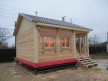Такая одноэтажная баня 6х8 может быть построена из любого типа бруса. Ориентировочный срок строительства 21 день.
