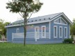 Коттедж имеет размеры 9х13 и чуть больше 100 квадратных метров общей площади. Рассчитан на семью с 1 ребёнком. По планировке кухня объединена с гостиной, есть 2 изолированные спальни, техпомещение (или гардеробная), санузел с ванной и самая настоящая сауна! Сразу предупредим вопросы о том, насколько безопасно делать сауну в частном доме. Отвечаем — при должном уходе никаких проблем не возникает. Влажность в сауне с хорошо спроектированной вентиляцией не привышает влажность в ванной комнате.