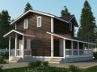 На фото представлен проект дачного дома №165 габаритами 7.5х10 метров и отличной планировкой общей площадью 115 квадратных метров. Можно выделить несколько особенностей проекта: терраса, веранда, туалет, ванная, санузел. Коттедж полутораэтажный, может использоваться как зимний, для постоянного проживания, коттедж.