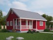 На фото представлен проект минималистичного брусового дома №271 габаритами 7.5х10 метров и отличной планировкой общей площадью 75 квадратных метров. Можно выделить несколько особенностей проекта: открытая терраса, 2 спальни, двускатная крыша. В зависимости от типа утепления и выбранного бруса дом можно построить для дачного или постоянного проживания.