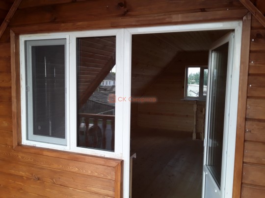Окна мы устанавливаем настоящие деревянные стеклопакеты с фурнитурой как на пластиковых окнах, дерево используется клееное, повторюсь, не имитация деревянных стеклопакетов, а именно качественные окна.