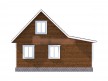 На фото представлен проект деревянного дома №81 габаритами 8х9 метров и отличной планировкой общей площадью 104 квадратных метров. Можно выделить несколько особенностей проекта: веранда. Коттедж с мансардой, может использоваться как зимний, для постоянного проживания, коттедж.