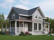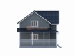 Особенность этого дома — наличие большой угловой террасы, которая вполне заменит собой беседку на дачном участке.